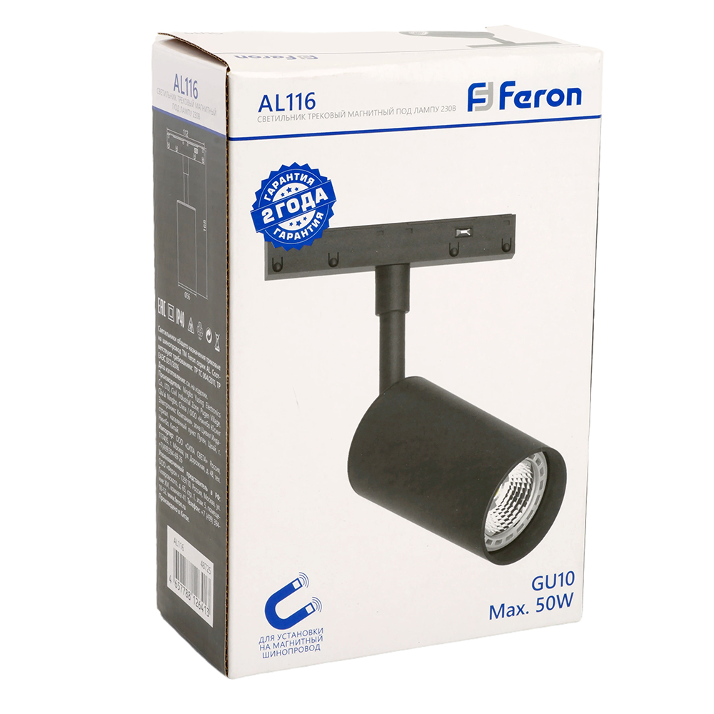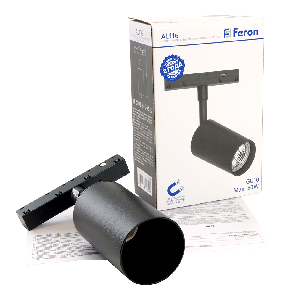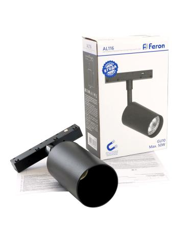 Светильник Feron AL116 трековый магнитный под лампу GU10 230В, черный