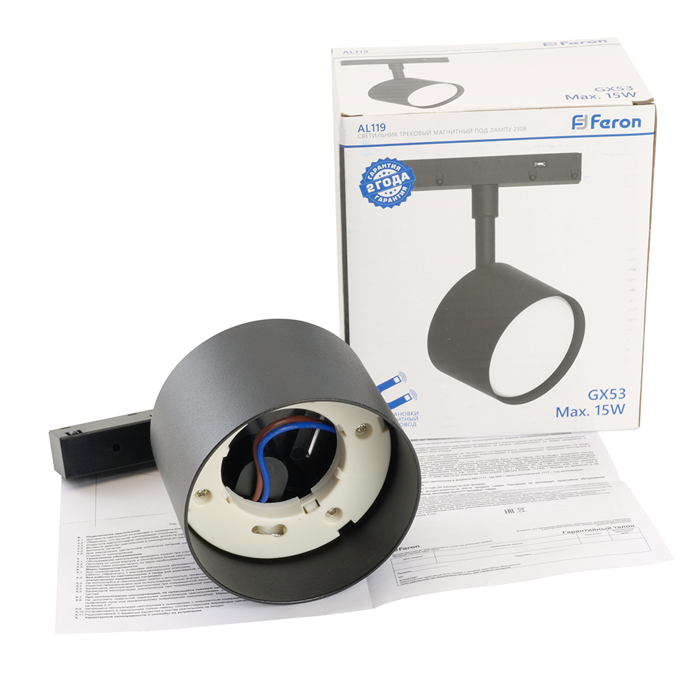 Светильник Feron AL119 трековый магнитный под лампу GX53 230В, черный