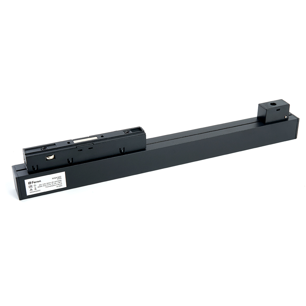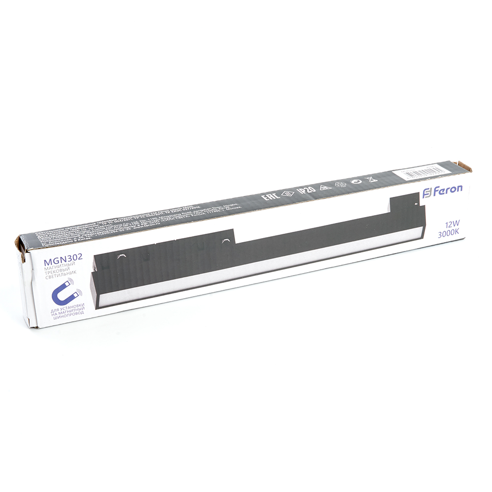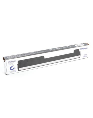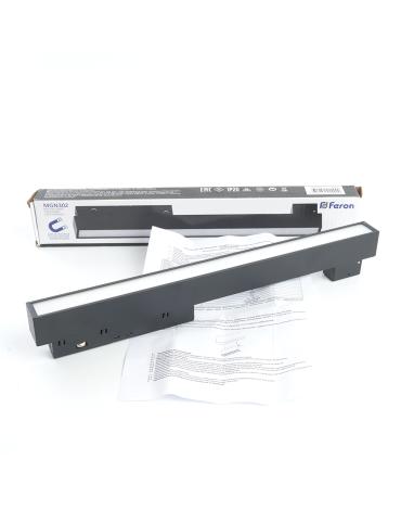 Светильник трековый на шинопровод, - (ДПО) FERON MGN302, 12W, 3000К (белый теплый), 48V, 960Lm, цвет черный, корпус алюминий, рассеиватель поликарбонат, 300*22*43 мм