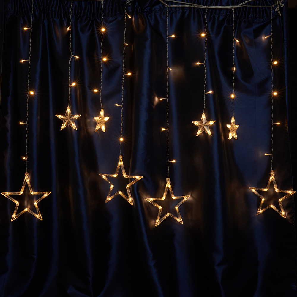 Светодиодная гирлянда Feron CL29 бахрома Звезды 3м + 3м 230V 2700K, статичная, c питанием от сети, прозрачный шнур