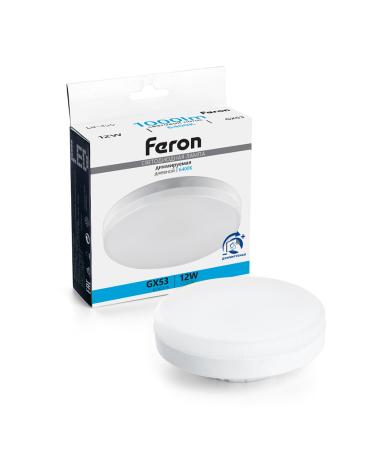 Лампа светодиодная FERON LB-456, GX53 (таблетка) диммируемая, 12W 230V GX53 6400К (дневной), рассеиватель матовый белый, 1000Lm, угол рассеивания 120°, 28*73мм