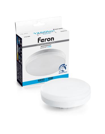 Лампа светодиодная FERON LB-457, GX53 (таблетка) диммируемая, 15W 230V GX53 6400К (дневной), рассеиватель матовый белый, 1260Lm, угол рассеивания 120°, 28*73мм