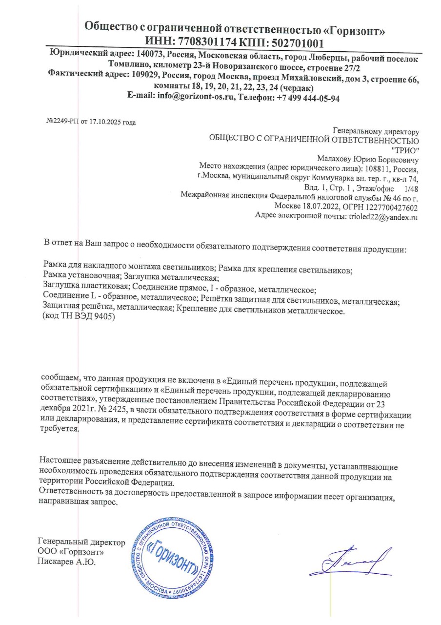 Рамка для накладного монтажа светодиодных панелей Армстронг 605х605х75мм РН-01