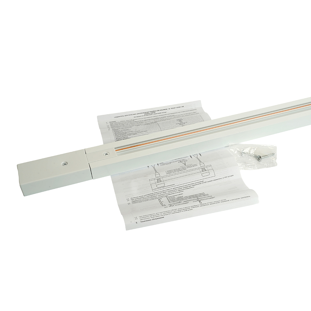 Шинопровод для трековых однофазных светильников, белый, 2м, в наборе токоввод, заглушка, крепление, CAB1007