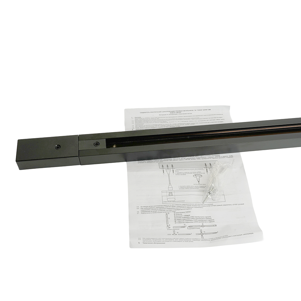Шинопровод для трековых однофазных светильников, черный, 1м, в наборе токоввод, заглушка, крепление, CAB1007