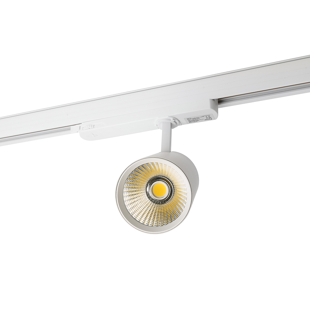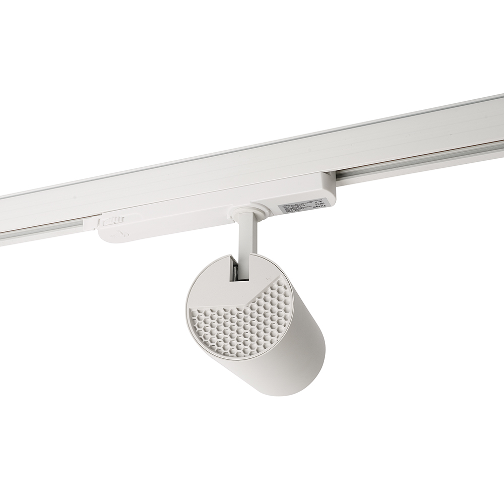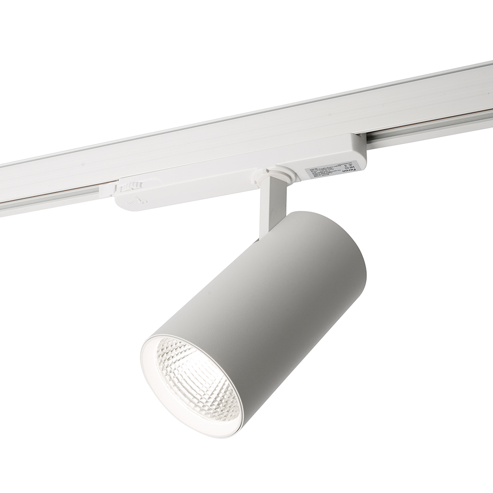 Светильник трековый на шинопровод, трехфазный (ДПО) FERON AL147, 20W, 4000К (белый), 170-265V, 1800Lm, цвет белый, корпус алюминий, рассеиватель поликарбонат, вращение →350°/↓90°, 205*70*155 мм