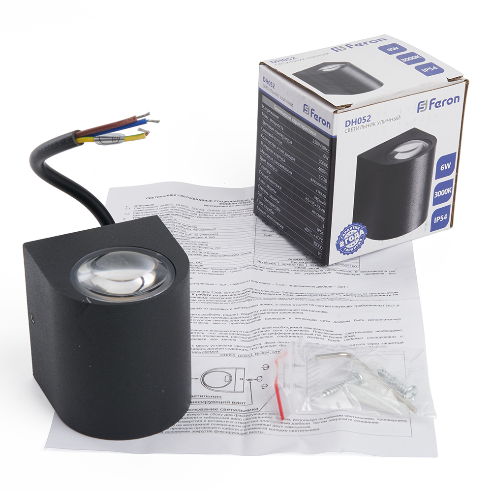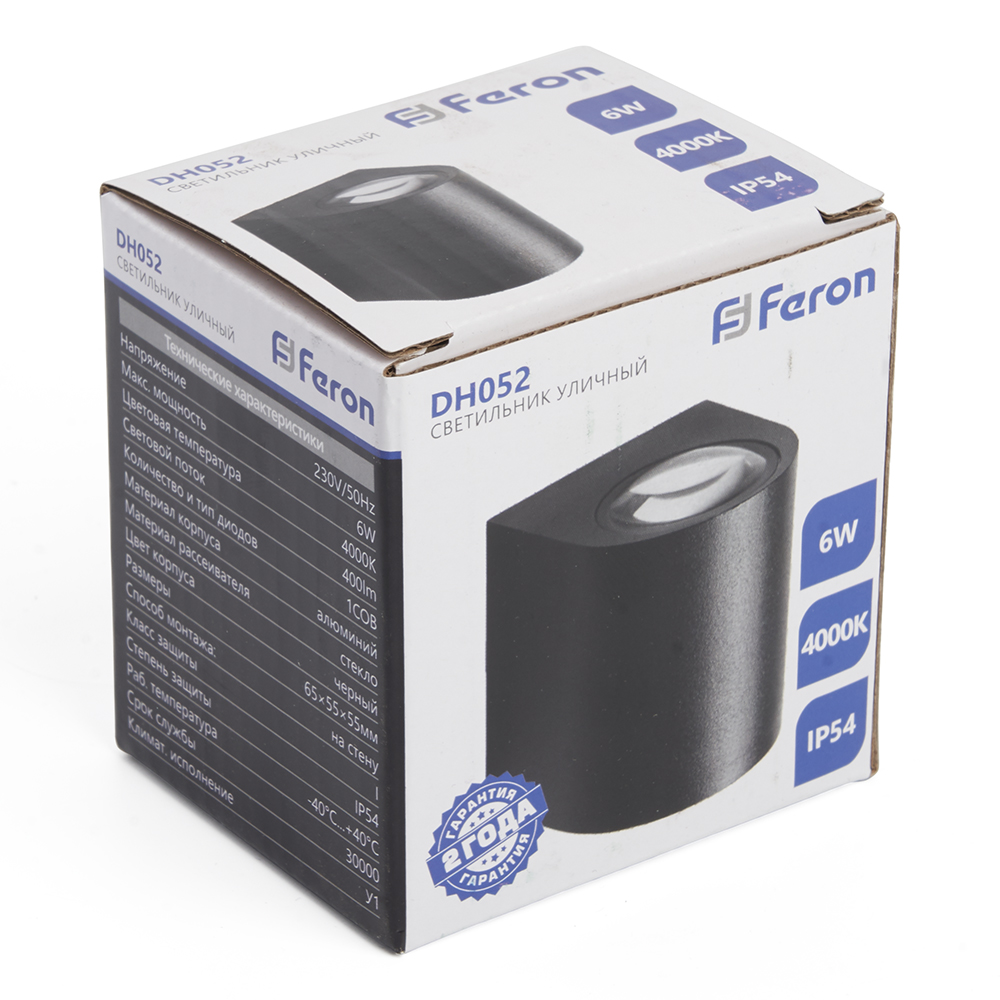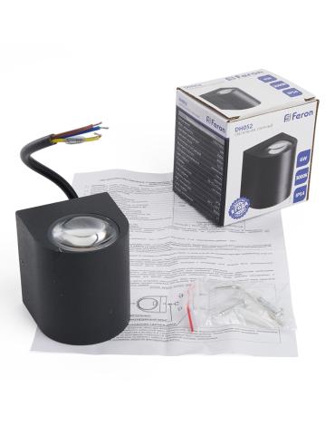 Светильник уличный светодиодный, на стену (ДБУ) FERON DH052, серия Бостон, 6W, 4000К (белый натуральный), 230V/50Гц, 400Lm, IP54, 1LED*COB, класс защиты 1, раб.t -40°C...+40°C, цвет черный, корпус алюминий, 55*55*65мм,