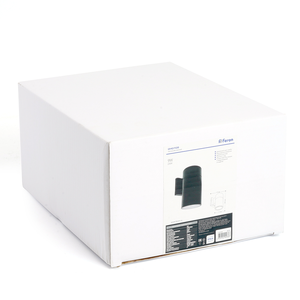 Светильник уличный светодиодный, на стену (ДБУ) FERON DH0709, серия Бостон, 9W, 2700К (теплый белый), 230V/50Гц, 850Lm, IP54, 9LED*SMD3030, класс защиты 1, раб.t -40°C...+40°C, цвет черный, корпус алюминий, 110*170*200мм,